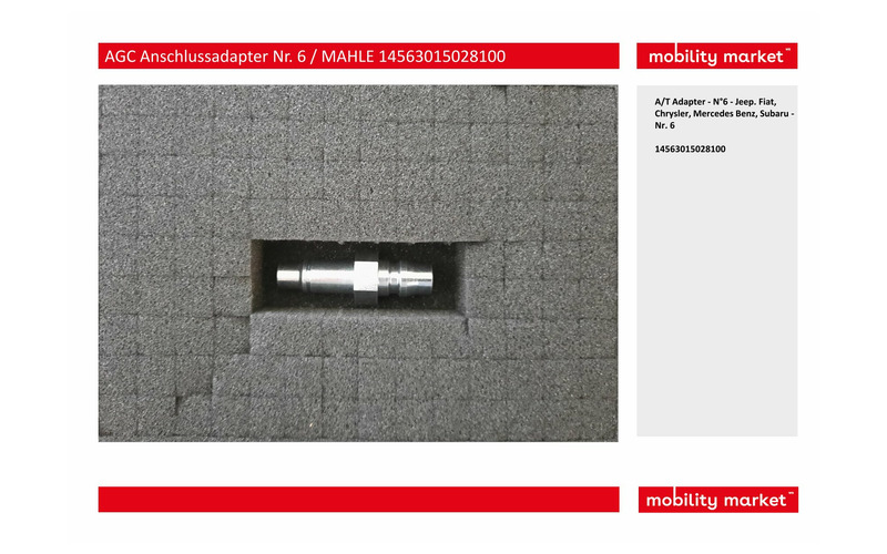 In diesem Fall handelt es sich um den AGC Anschlussadapter Nr. 6, mit welchem Du verschiedene Getriebetypen von JEEP, FIAT, CHRYSLER, MERCEDES-BENZ u. SUBARU spülen kannst.