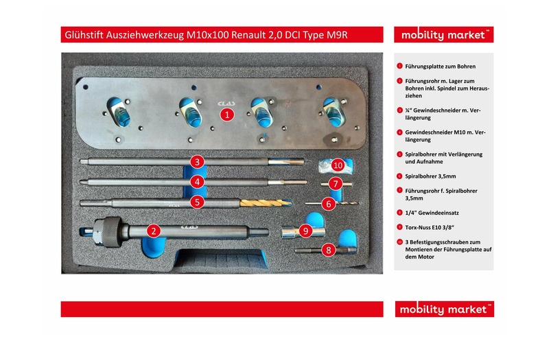 Der Glühkerzen-Werkzeugsatz ermöglicht das schnelle, präzise und fachgerechte Ausbohren von beschädigten bzw. abgerissenen Glühkerzen, das Nachschneiden, Reinigen oder Reparieren des Glühkerzen-Aufnahmegewindes & Reinigung der Glühkerzenbohrung.