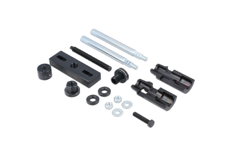Dieser Einspritzdüsenabzieher wurde entwickelt, um die Einspritzdüsen aus Dieselmotoren Ford EcoBlue als Ganzes abziehen zu können. Bisher ließen sich die EcoBlue-Einspritzdüsen nur ausbauen, indem der Kraftstoffrücklaufanschluss und der Piezokopf durch Abbrechen entfernt wurden, wodurch die Einspritzdüse nicht mehr zu gebrauchen war. Mit diesem Werkzeugsatz können diese Einspritzdüsen abgezogen werden, ohne sie zu zerstören.