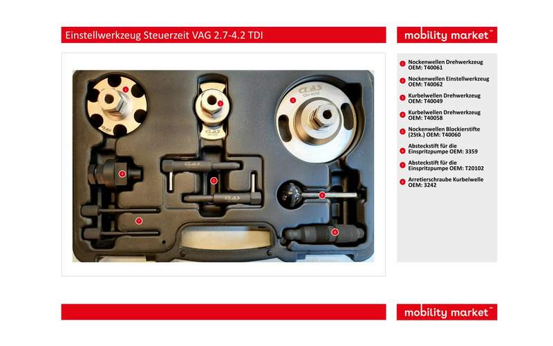 Werkzeugsatz mit dem Sie die Nockenwelle und die Kurbelwelle beim Wechseln der Steuerkette richtig positionieren können.