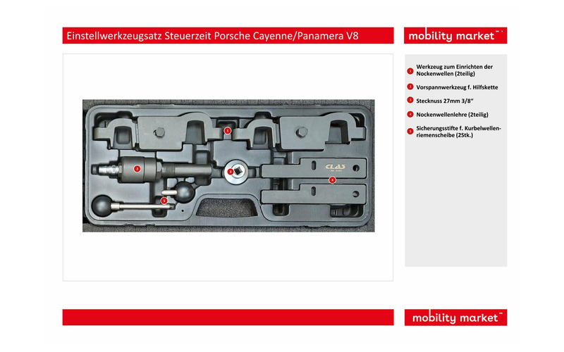 Werkzeugsatz mit dem Sie die Nockenwelle und die Kurbelwelle beim Wechseln der Steuerkette richtig positionieren können.