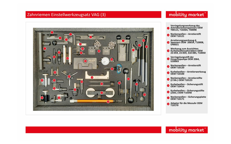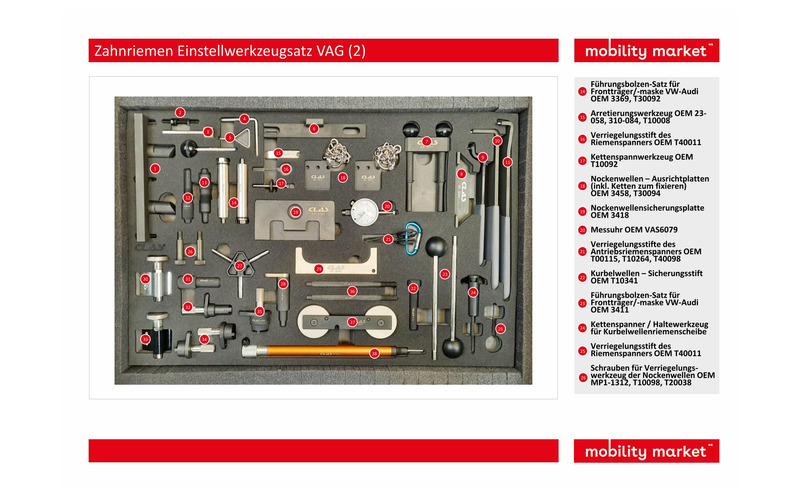 Werkzeugsatz mit dem Sie die Nockenwelle und die Kurbelwelle beim Wechseln des Zahnriemens richtig positionieren können.