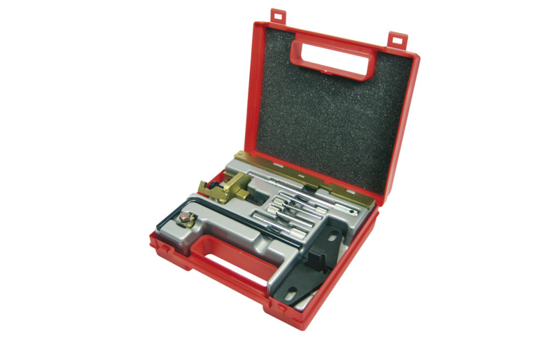Werkzeugsatz mit dem Sie die Nockenwelle und die Kurbelwelle bzw. Nebenaggregate, die vom Zahnriemen angetrieben werden beim Wechseln des Zahnriemens richtig positionieren können.