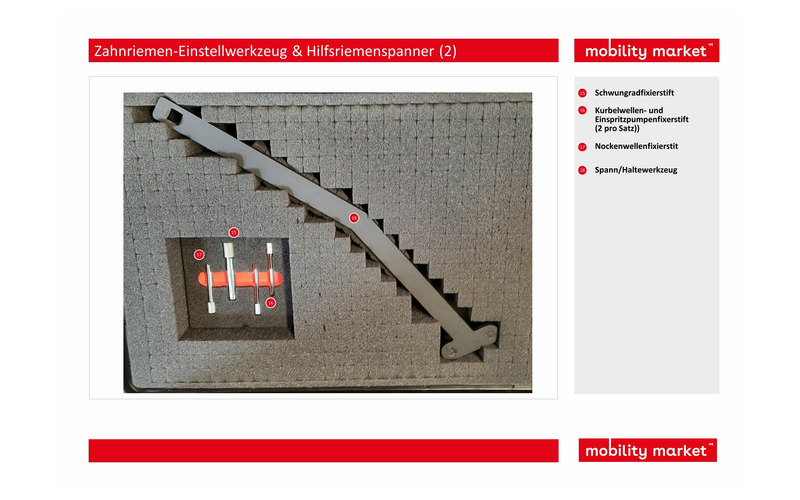 Werkzeugsatz um die Nockenwelle und die Kurbelwelle bzw. Nebenaggregate, die vom Zahnriemen angetrieben werden beim Wechseln des Zahnriemens richtig positionieren können.
