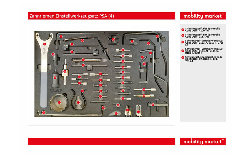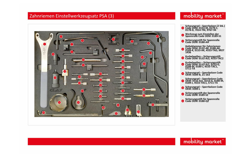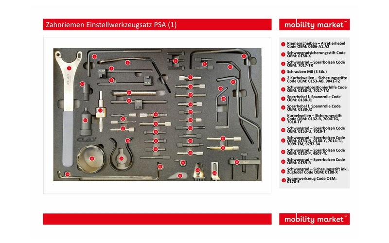 Werkzeugsatz mit dem Sie die Nockenwelle und die Kurbelwelle beim Wechseln des Zahnriemens richtig positionieren können.